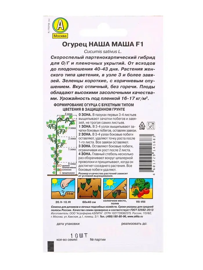 Семена Огурец Наша Маша F1 Парт, Ц/П,10 шт.
