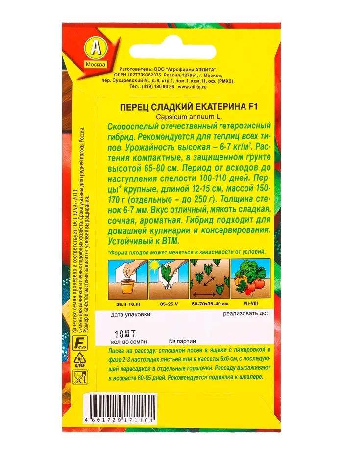 Семена Перец сладкий Екатерина F1, Ц/П,10 шт.