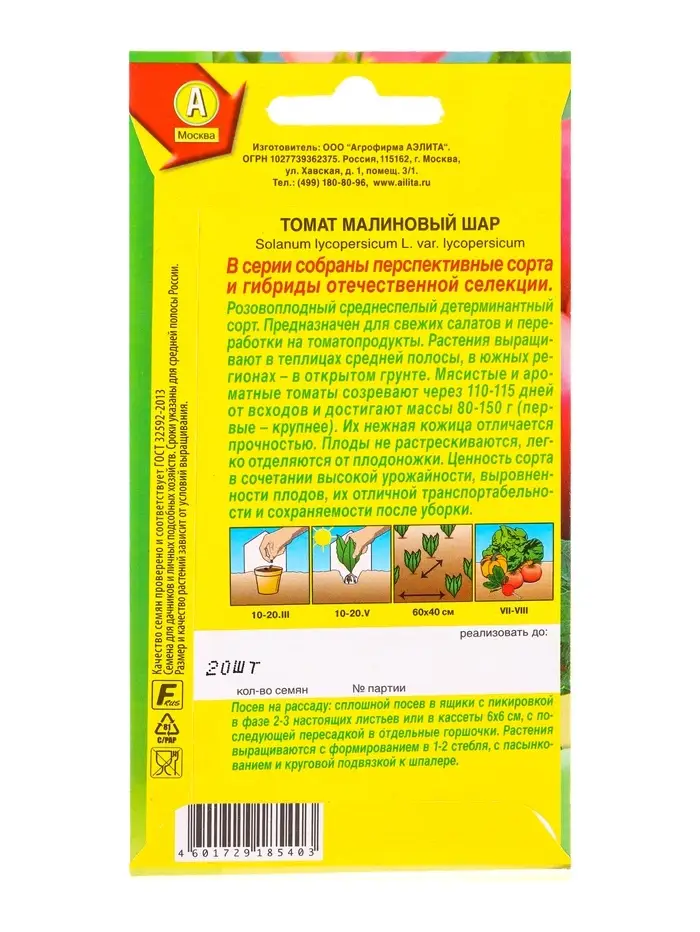 Семена Томат Малиновый шар Отечественная С.екция, Ц/П,20 шт.