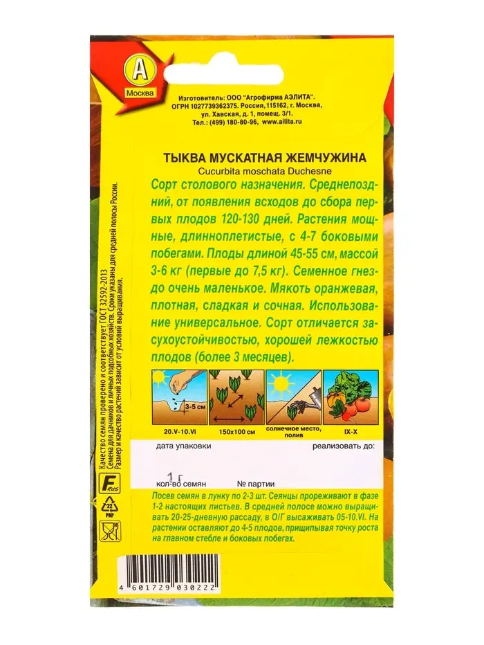 Семена Тыква мускатная Жемчужина, Ц/П,1 г