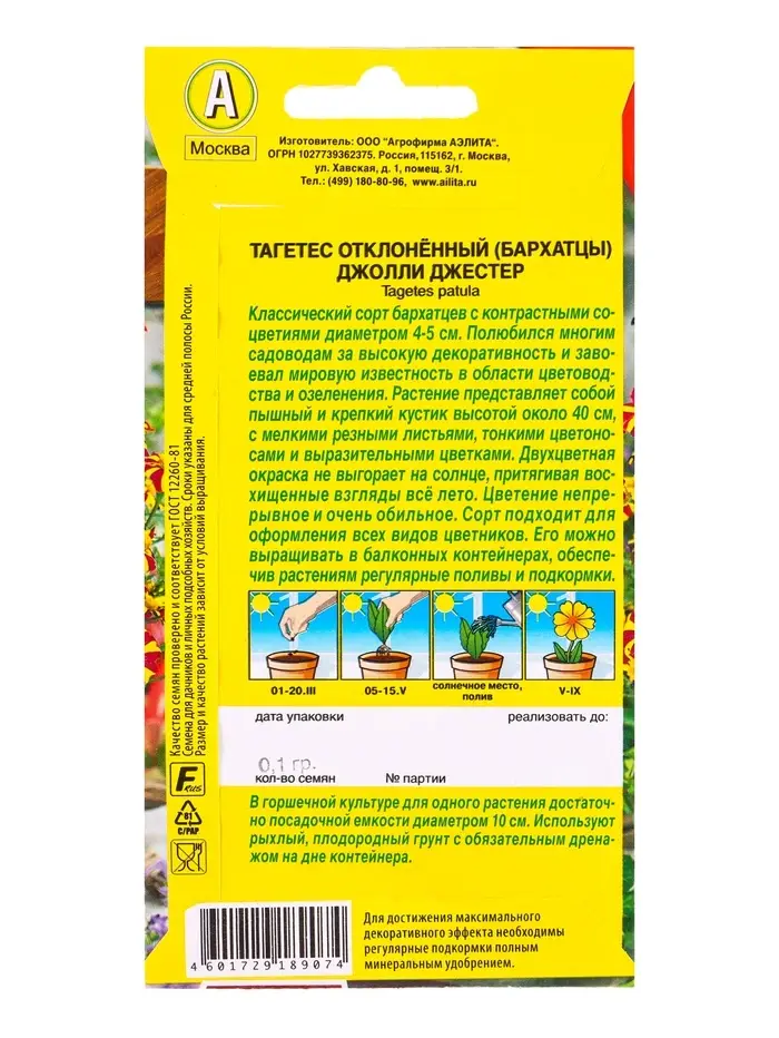 Семена цветов Бархатцы Джолли Джестер отклоненные Цветущий балкон, Ц/П,0,1 г