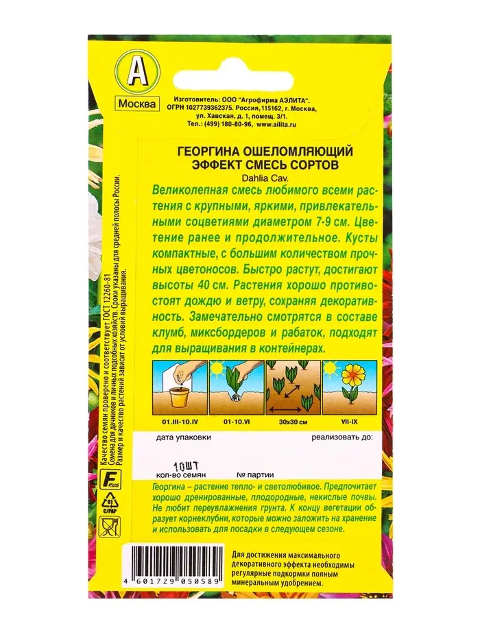 Семена цветов Георгина Ошеломляющий эффект, смесь сортов , Ц/П,10 шт.