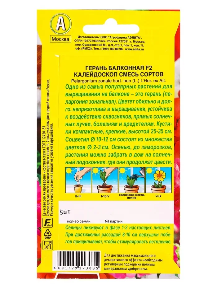 Семена цветов Герань Балконная калейдоскоп F2, смесь сортов Мн Цветущий балкон, Ц/П,5 шт.