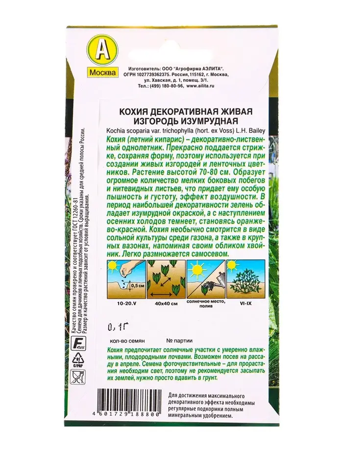 Семена цветов Кохия Живая изгородь изумрудная Золотая серия, Ц/П,0,1 г