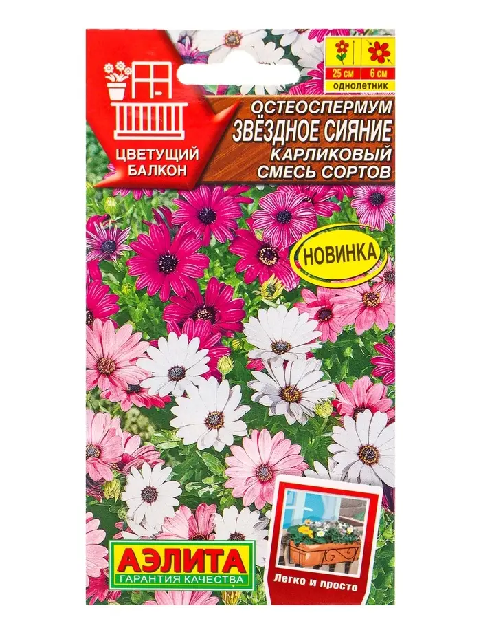Семена цветов Остеоспермум Звездное сияние карликовый, смесь сортов Цветущий балкон, Ц/П,10 шт. 109