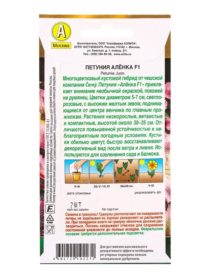 Семена цветов Петуния Алёнка F1 многоцветковая (драже) С. Cerny , Ц/П,7 шт.