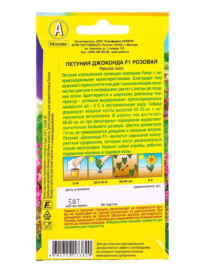 Семена цветов Петуния Джоконда F1 розовая (драже в пробирке) С. Farao, Ц/П,5 шт.