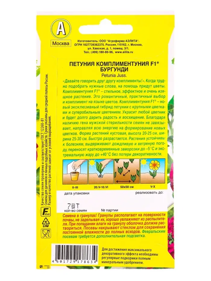 Семена цветов Петуния Комплиментуния F1 бургунди крупноцветковая (драже в пробирке), Ц/П,7 шт. 1094
