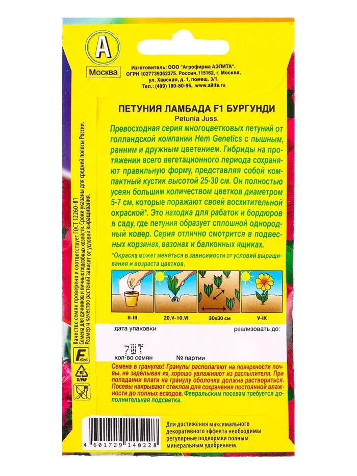 Семена цветов Петуния Ламбада F1 бургунди многоцветковая (драже) С. Hem Genetics, Ц/П,7 шт. 1094574