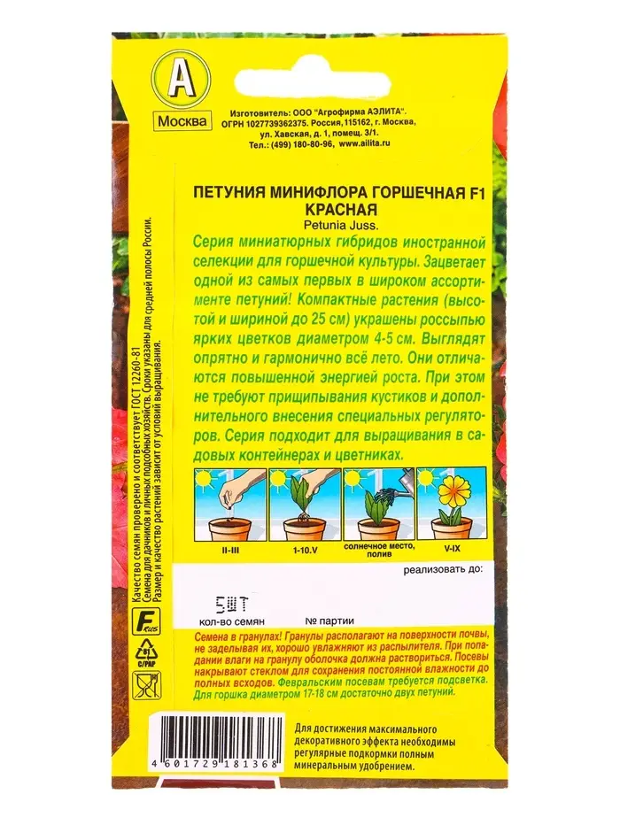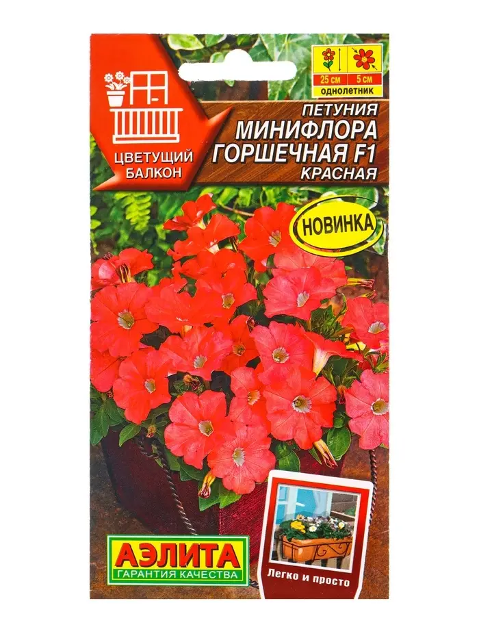 Семена цветов Петуния Минифлора горшечная F1 красная (драже) Цветущий балкон, Ц/П,5 шт.