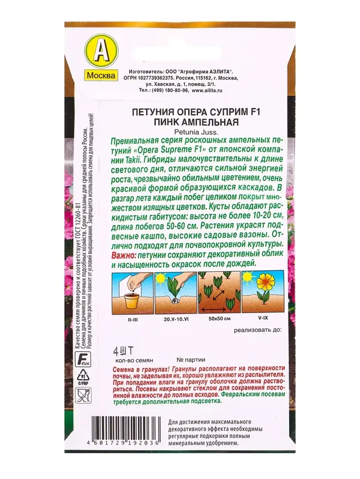 Семена цветов Петуния Опера суприм F1 пинк ампельная (драже в пробирке) Золотая серия, Ц/П,4 шт. 10