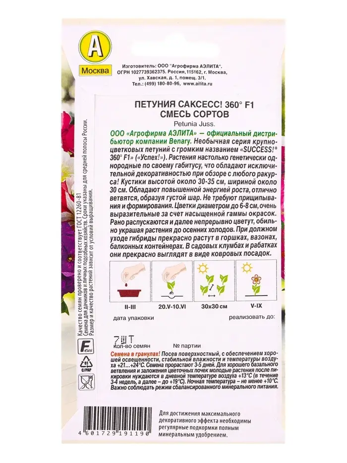 Семена цветов Петуния САКСЕСС! 360° F1, смесь сортов (драже) Benary, Ц/П,7 шт.