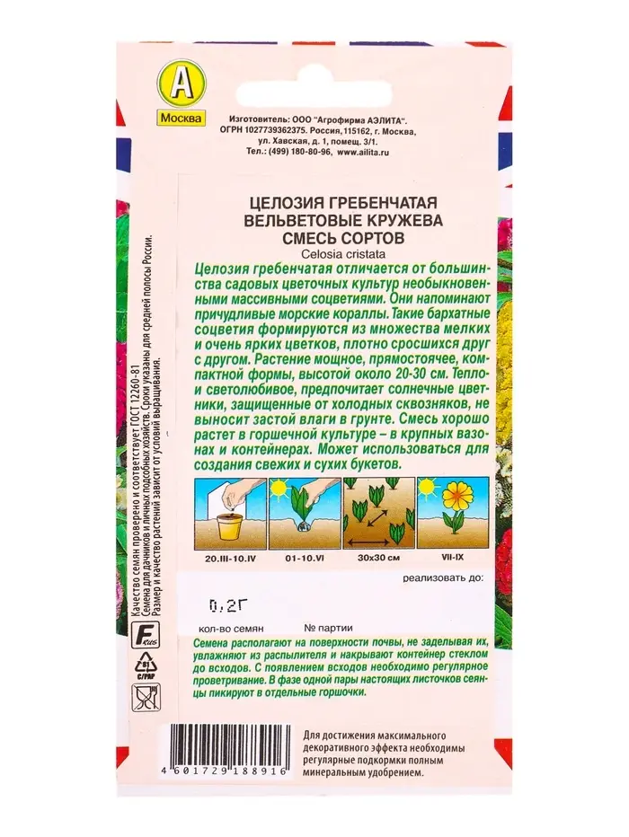 Семена цветов Целозия гребенчатая Вельветовые кружева, Британская коллекция цветов, Ц/П,0,2 г 109459