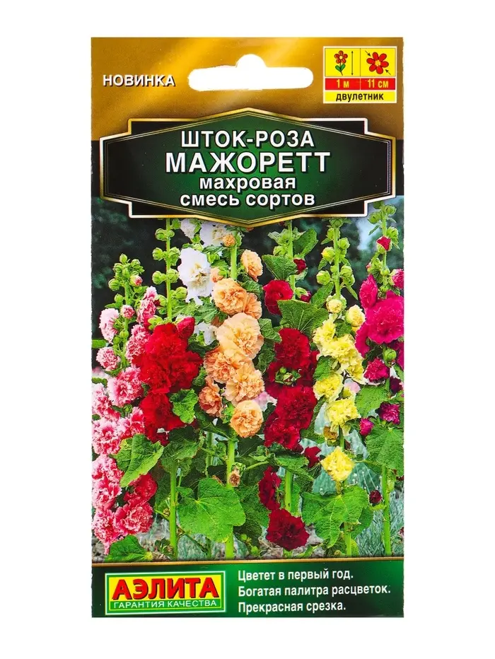 Семена цветов Шток-роза Мажоретт махровая, смесь сортов Золотая серия, Ц/П,15 шт.