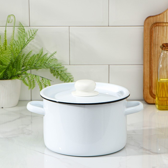 Кастрюля эмалированная, 2,9 л, металлическая крышка, цвет МИКС