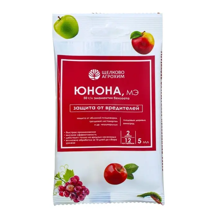Инсектицид Юнона, МЭ для защиты садов и виноградников от чешуекрылых вредителей, флакон 5 мл