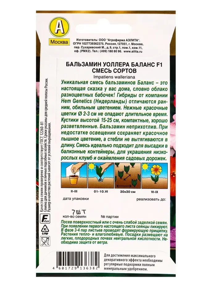 Семена цветов Бальзамин Баланс F1, смесь сортов С. Hem Genetics Золотая серия, Ц/П,7 шт.