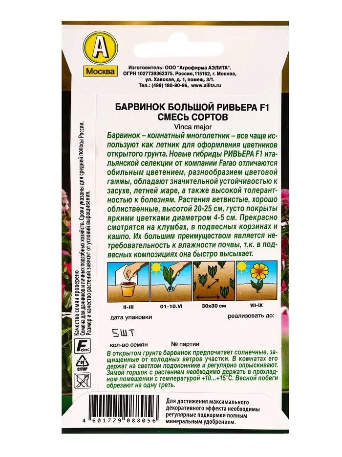 Семена цветов Барвинок Ривьера F1, смесь сортов С. Farao Золотая серия, Ц/П,5 шт.