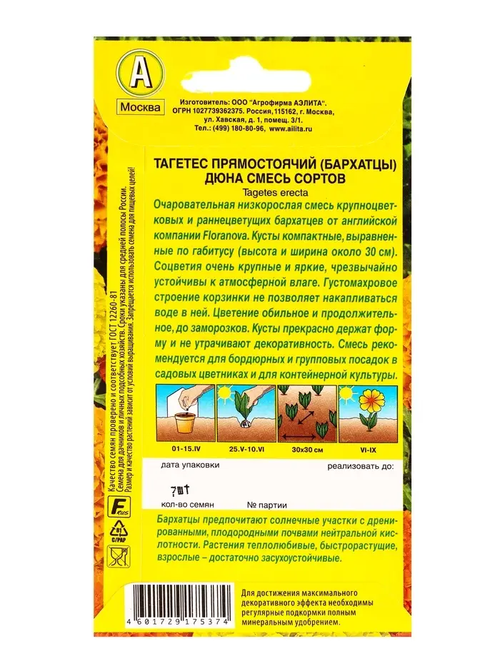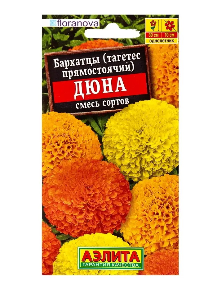 Семена цветов Бархатцы Дюна прямостоячие, смесь сортов С. Floranova, Ц/П,7 шт.
