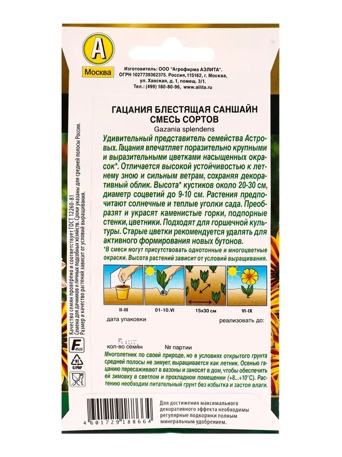 Семена цветов Гацания Саншайн, смесь сортов Золотая серия, Ц/П,5 шт.