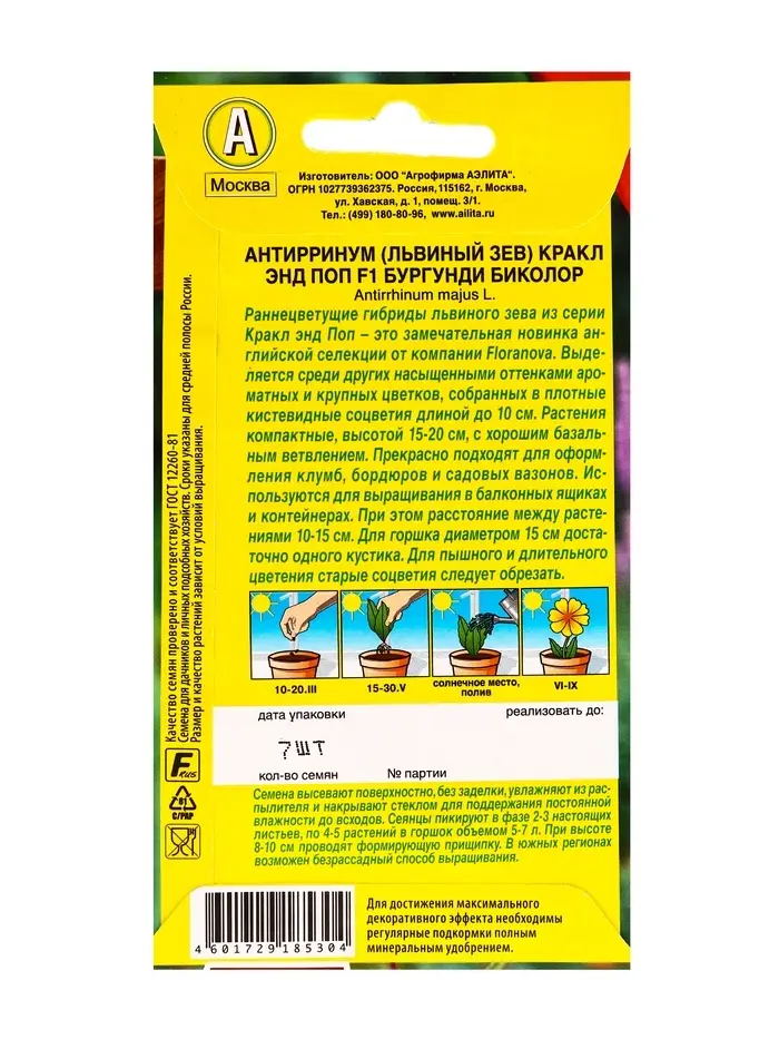 Семена цветов Львиный зев Кракл энд поп F1 бургунди биколор С. Floranova Цветущий балкон, Ц/П,7 шт.