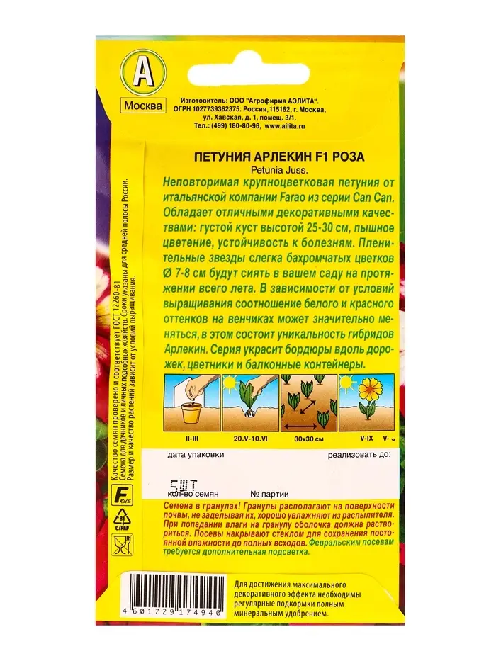 Семена цветов Петуния Арлекин Роза F1 крупноцветковая (драже в пробирке) С. Farao, Ц/П,5 шт. 109456