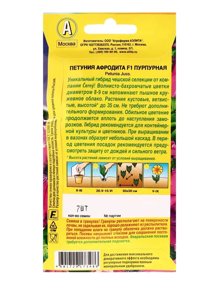 Семена цветов Петуния Афродита F1 пурпурная крупноцветковая бахромчатая (драже) С. Cerny, Ц/П,7 шт.
