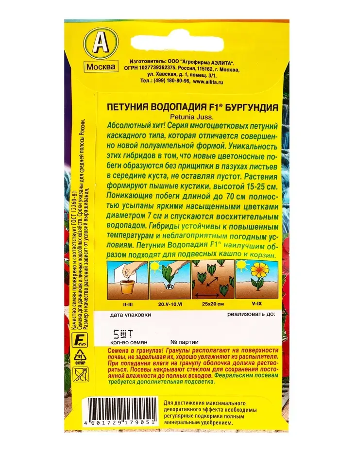 Семена цветов Петуния ВОДОПАДИЯ F1 бургундия (драже в пробирке), Ц/П,5 шт.