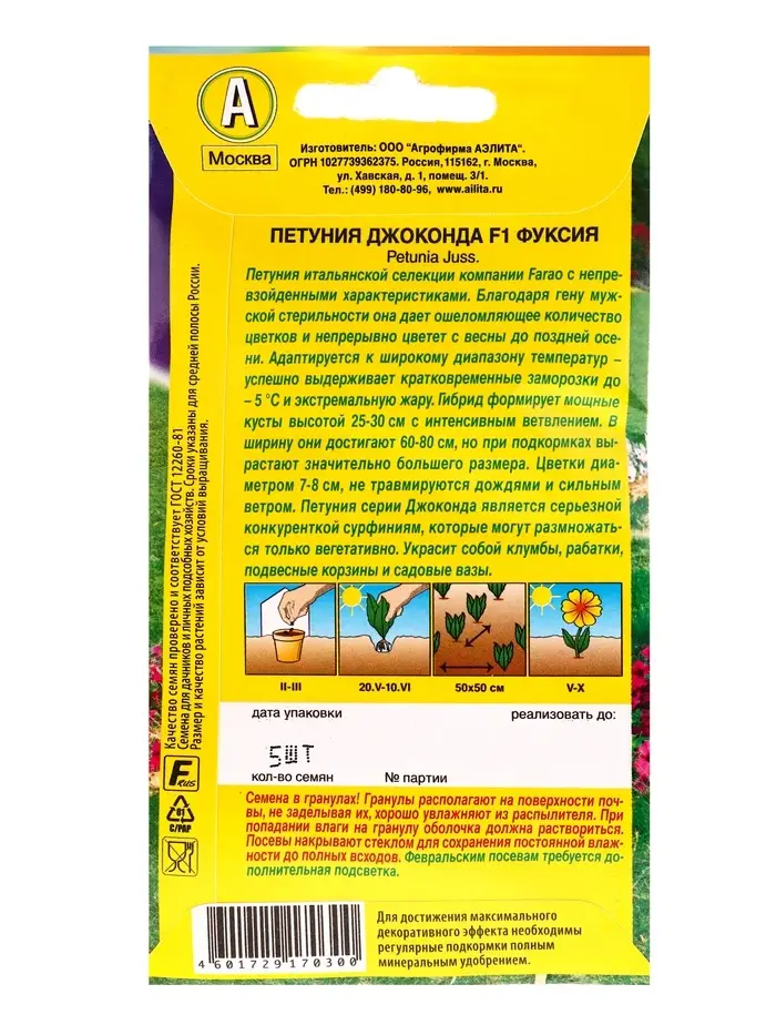 Семена цветов Петуния Джоконда F1 фуксия (драже в пробирке) С. Farao, Ц/П,5 шт.