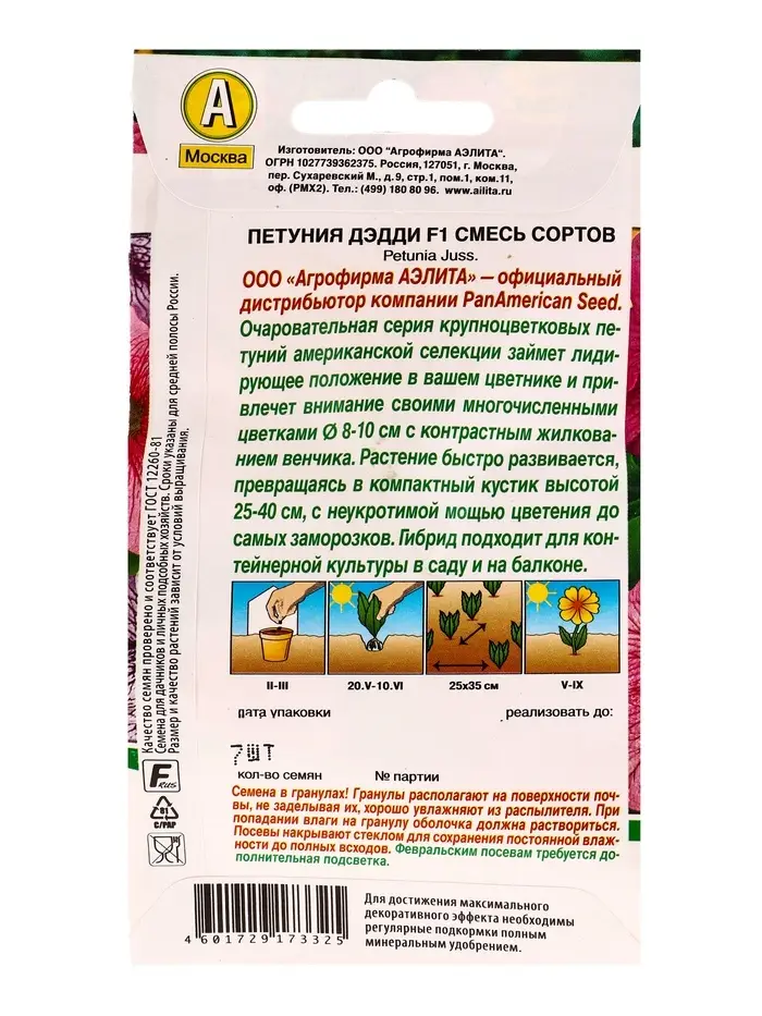 Семена цветов Петуния Дэдди F1, смесь сортов (драже в пробирке) Спецсерия PanAmerican, Ц/П,7 шт. 10