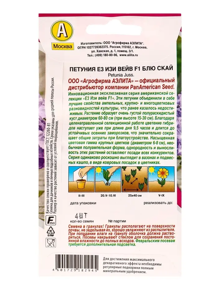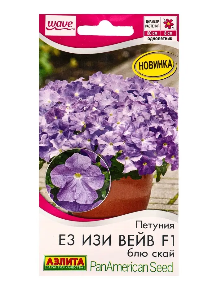 Семена цветов Петуния Е3 Изи вейв F1 блю скай (драже) PanAmerican Wave, Ц/П,4 шт.