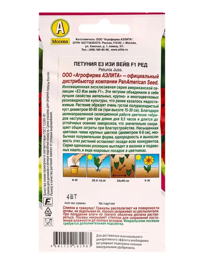 Семена цветов Петуния Е3 Изи Вейв F1 ред (драже) PanAmerican Wave, Ц/П,4 шт.