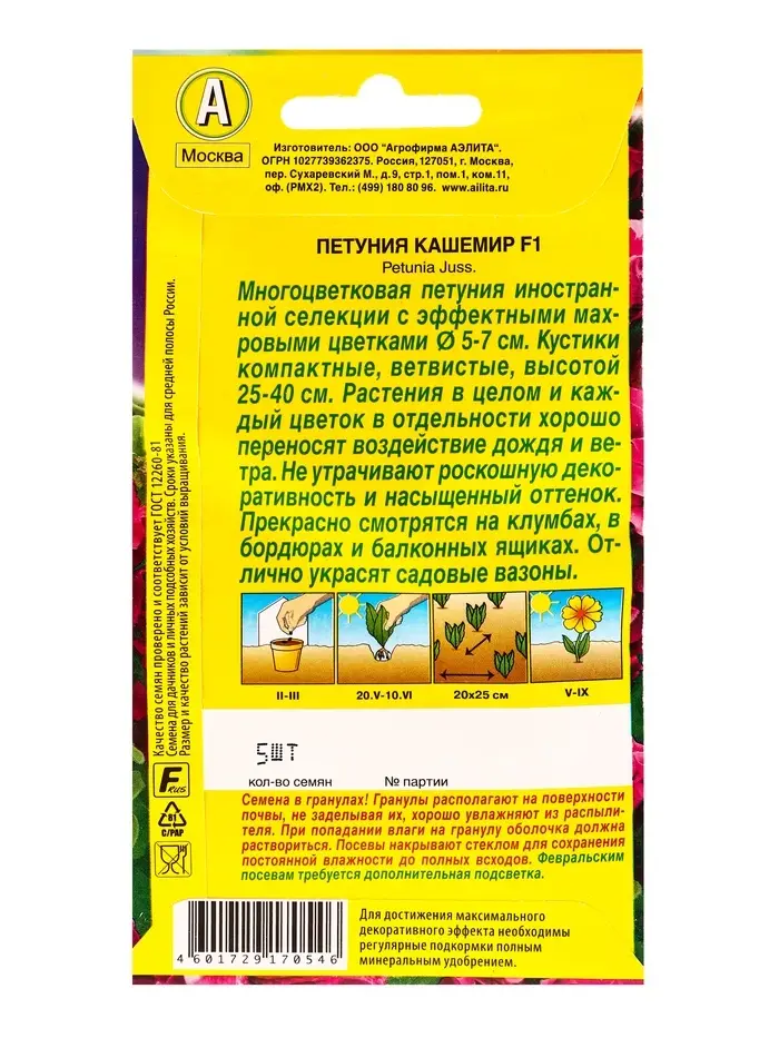 Семена цветов Петуния Кашемир F1 обильноцветущая махровая (драже в пробирке), Ц/П,5 шт.