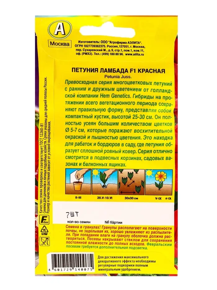 Семена цветов Петуния Ламбада F1 красная многоцветковая (драже) С. Hem Genetics, Ц/П,7 шт.