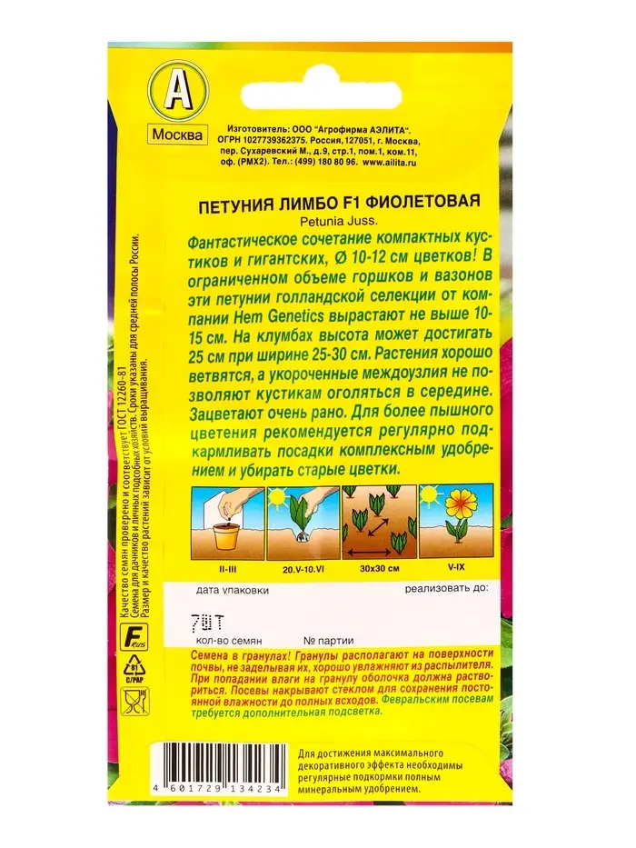 Семена цветов Петуния Лимбо F1 фиолетовая крупноцветковая (драже) С. Hem Genetics, Ц/П,7 шт. 109457