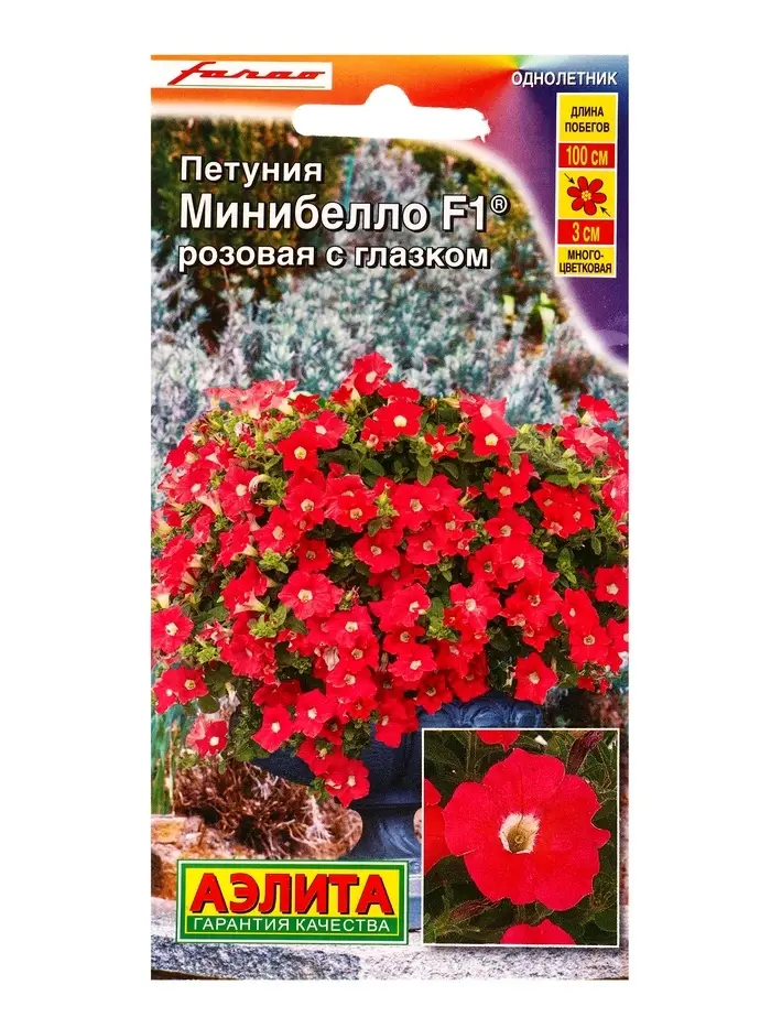 Семена цветов Петуния мини Минибелло F1 розовая с глазком многоцветковая (драже) С. Farao, Ц/П,5 шт.