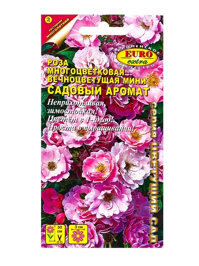 Семена цветов Роза Садовый аромат многоцветковая А/З Мн, Ц/П,0,03 г