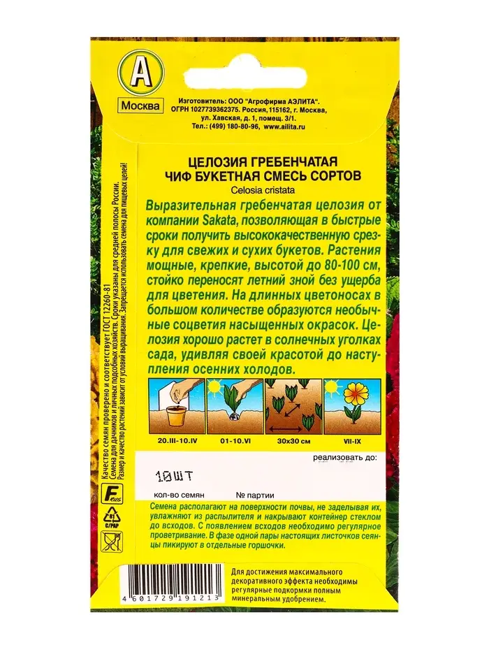 Семена цветов Целозия гребенчатая Чиф букетная, смесь сортов С. Sakata, Ц/П,10 шт.