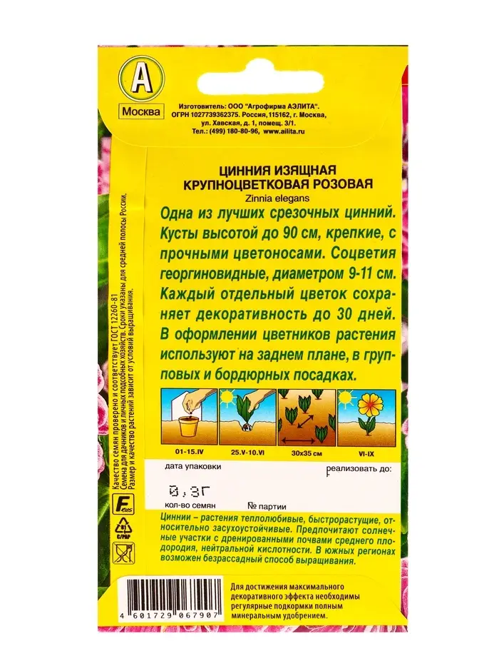 Семена цветов Цинния Крупноцветковая розовая , Ц/П,0,3 г