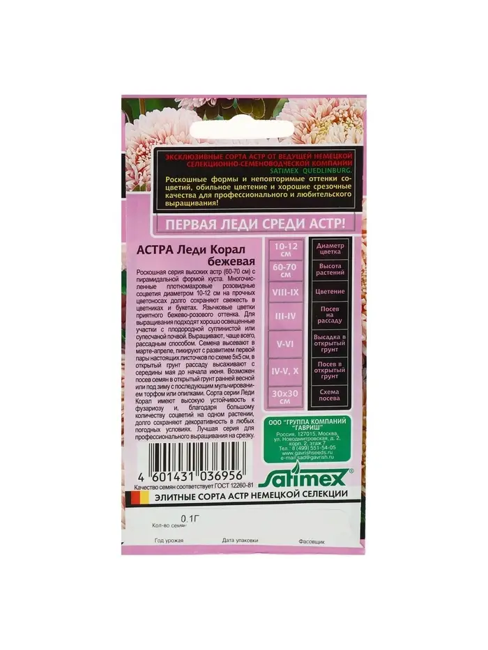 Набор семян Астра "Леди Корал бежевая", однолетняя, серия Эксклюзив, 5 шт.