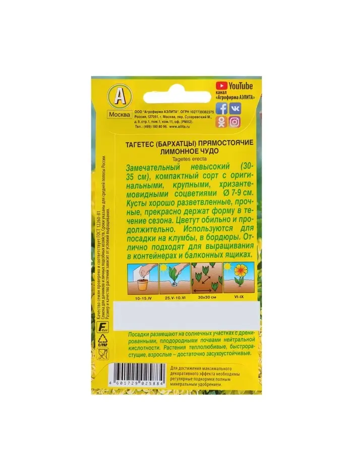 Набор семян Бархатцы "Лимонное чудо" прямостоячие, О, 5 шт.