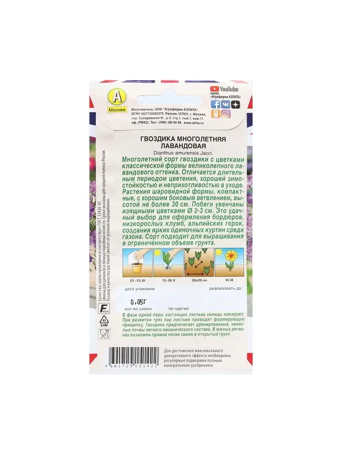 Набор семян Гвоздика многолетняя лавандовая, 5 шт.
