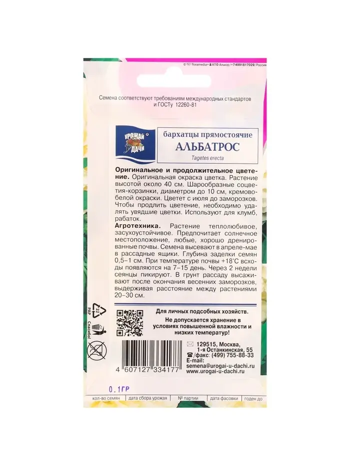 Набор семян Бархатцы прямостоячие "Альбатрос", махровые, 5 шт.