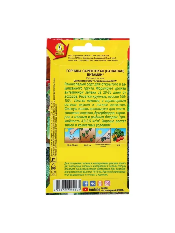 Набор семян Горчица салатная "Витамин", 5 шт.