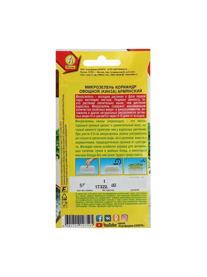 Набор семян Микрозелень Кинза, 5 шт.