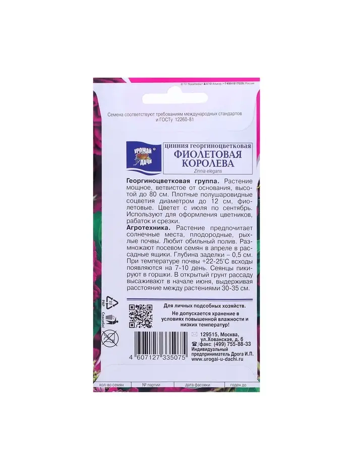Набор семян Цинния георгин. "Фиолетовая королева", 5 шт.
