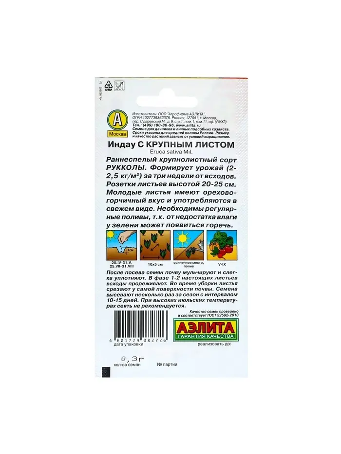 Набор семян Индау (руккола) с крупным листом, 5 шт.