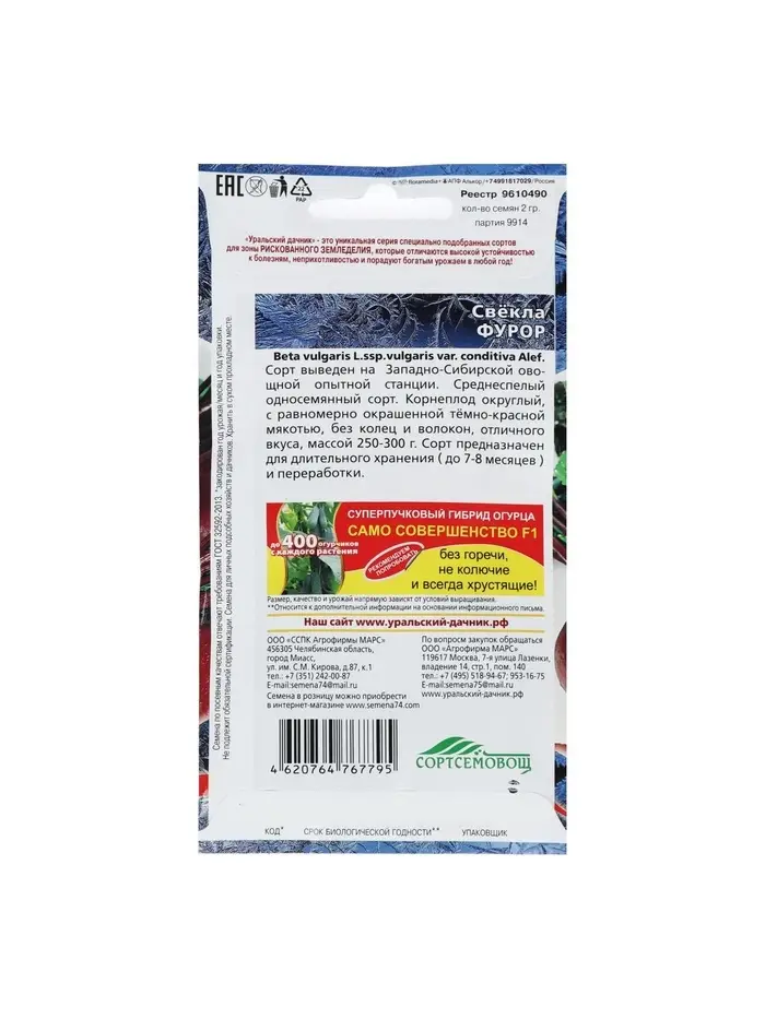 Набор семян Свекла "Фурор" округлая, с тёмно-красной мякотью, 5 шт.