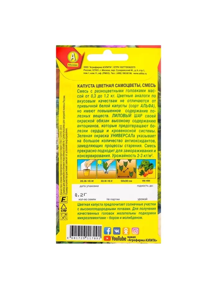 Набор семян Капуста цветная "Самоцветы", смесь, 5 шт.