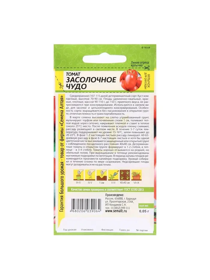 Набор семян Томат "Засолочное Чудо", среднеранний, цп, детерминантный, 5 шт.